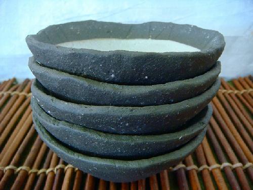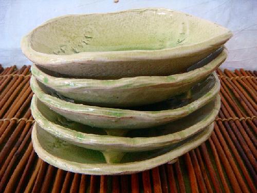 売り切れ信楽焼 萌葱そぎ足付鉢 5客揃