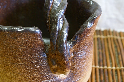 信楽焼 ミニ花入 白釉足付鈴音(剣山付)