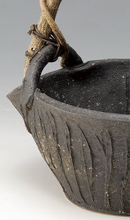 つる付花入 手桶黒窯彫