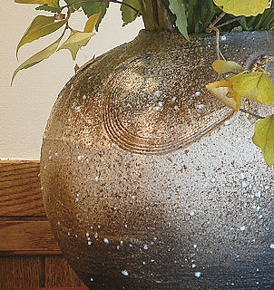 信楽焼 荒土化粧花彫