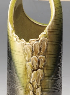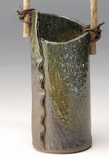 つる付花入 たたら合わせ緑釉