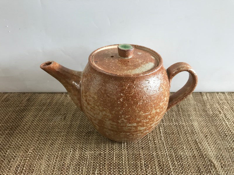 Shigarakiと刻印をあしらった品物。使いやすいサイズ感とお茶以外にも使えるマルチポット。ステンレスの網付。